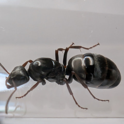 Formica podzolica also sometimes called the Mound Ant is a medium sized black Formica ant without majors. They are commonly found in canyons, mountains, and in coniferous forests of the Northern United States. They can be quite aggressive and ready to attack if the nest is disturbed. Often hundreds of workers can react.
